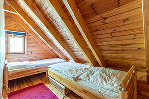 Im Obergeschoss befinden sich die drei Schlafzimmer, ein geräumiges Elternschlafzimmer mit Doppelbett und fantastischer Aussicht auf die Seewiesen und das Wasser, sowie zwei weitere Schlafzimmer mit jeweils zwei Einzelbetten. Im Außenbereich findet Ihr eine überdachte Terrasse mit einer Sitzgruppe und einem Grill.
