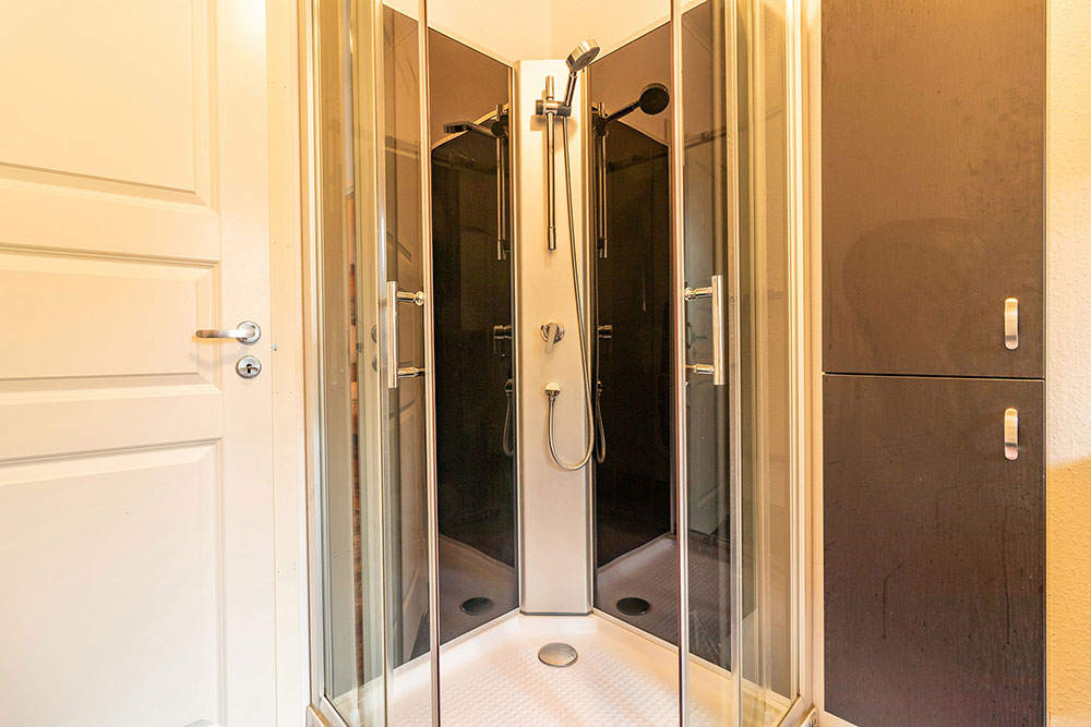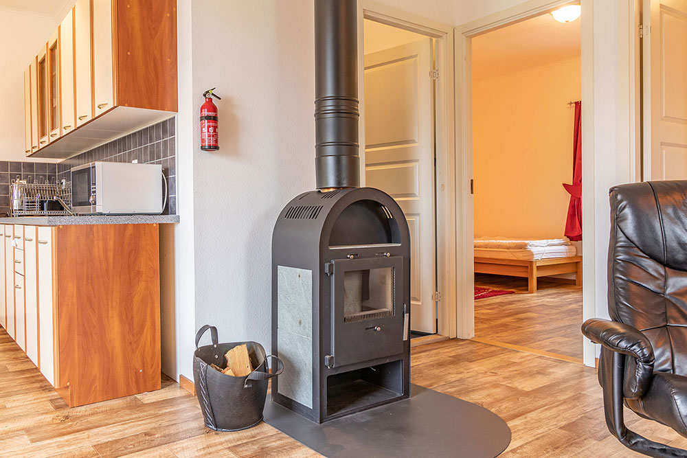 Im Wohnbereich gibt es eine gemütliche Couchecke, Sat-TV und einen Kamin. Heizen könnt ihr aber auch mit der Luft/Luft-Wärmepumpe, die im Sommer zusätzlich auch als Klimagerät verwendet werden kann. Der Küchenbereich, in dem sich auch der Essplatz befindet, ist unter anderem mit einem Gasherd mit Backofen, einer Kühlgefrierkombination, Mikrowelle, Wasserkocher, Toaster und Kaffeemaschine ausgestattet. Im Bad gibt es eine Dusche und ein WC.